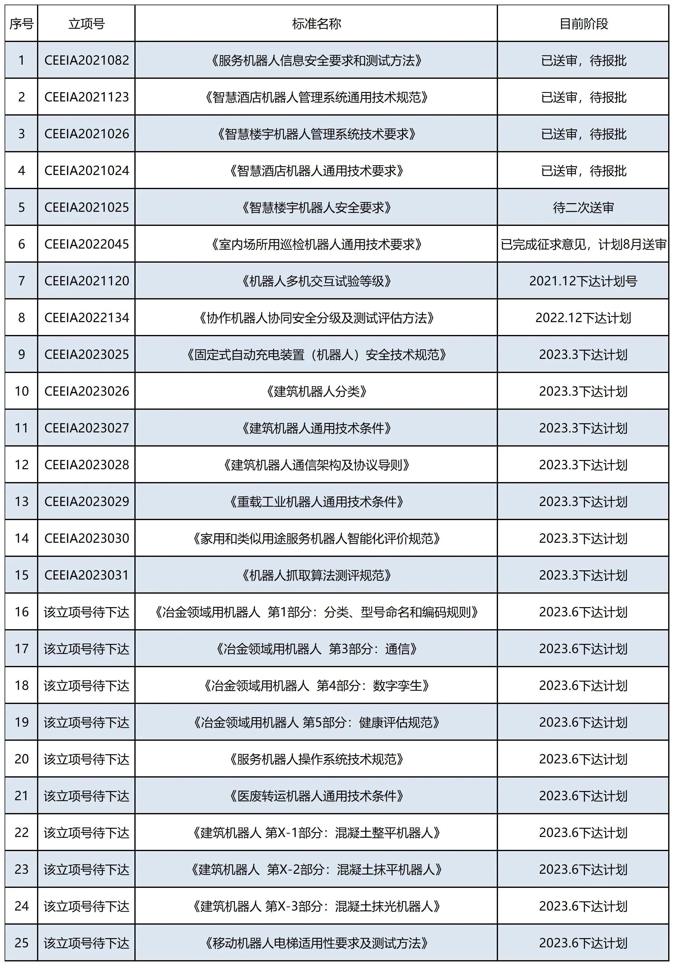 中电协电气场所用工业机器人安全与检测标准化专业委员会(CEEIA/TC50)成立于2019年4月,其上级管理部门中国电器工业协会为AAAA级社会组织,主要负责机器人领域团体标准制修订工作。目前发布团体标准26项,在研标准25项。